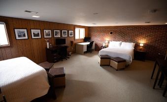 The rooms have desk workstations for remote workers.