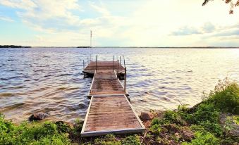 Bring the whole family to this large waterfront log house located on Mississippi Lake. There is lots of space for everyone with five bedrooms, separate office, spacious great room with stone fireplace, saunas . This 100 acre property has access to walking trails, 8 acres of mowed greenspace, 500ft of sandy shoreline complete with a private dock to truly enjoy the outdoors. Unwind yourself being surrounded by nature and enjoy campfires all while star gazing.About pets:No pets allowed.About checkOut:Check out before 11:00 AM.About children:Children allowed: ages 0-17.About checkIn:Check in after 4:00 PM.About smoking:Smoking is not permitted.About events:No events allowed.