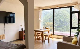 房間很乾凈整齊,窗户外面就是山,房間內有茶具,入住送茶,可以小酌也可以和人對飲,房東小姐姐還送了一張韓國補水面膜,浴巾、牙具都是一次性的很乾凈,可以持續來~