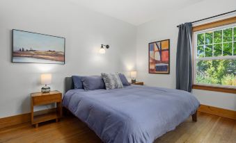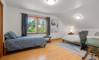 The home's generous layout accommodates up to two families with ease, offering large bedrooms with ample closet space and all-new, high-quality mattresses, pillows, and linens for a restful night's sleep. The Primary Bedroom is furnished with a king bed and access to a full bathroom with a tub. Guest Bedroom 2 is equipped with a king bed as well as 2 twin beds whereas Guest Bedroom 3 has 2 twin beds - perfect for those traveling with children. The second and third bedrooms have access to a full bathroom with a soaking tub and walk-in shower. You'll even enjoy a peekaboo view of Mt. Kulshan from the comfort of your room.
