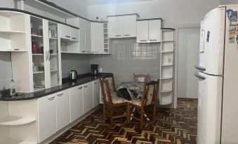 Prós: A pousada é de fácil localização, próximo ao Centro de Bento Gonçalves. Com um preço acessível e estrutura boa. Chegamos no local e estava sendo realizada a limpeza do quarto, mas pudemos deixar as nossas malas lá para que pudéssemos curtir a cidade e retornar próximo ao horário de check-in. Local com estrutura boa, cozinha limpa e com utensílios básicos, o banheiro é compartilhado mas limpo, o quarto estava limpo, organizado, cheiro agradável, com tv e frigobar. Pontos de melhoria Chegamos lá e gostaríamos de poder ter utilizado a TV, porém não havia controle remoto, procuramos no quarto e não achamos, foi sinalizado para a funcionária da pousada a falta do mesmo, porém ela disse pra que procurássemos melhor, mesmo já informado que já havíamos procurado. (Vistoriar o quarto antes de liberar para os próximos convidados).