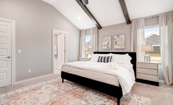 (1) Our King bedroom complete with a closet, dresser, 55-inch Roku TV and en suite bath with shower and jacuzzi tub.