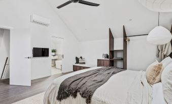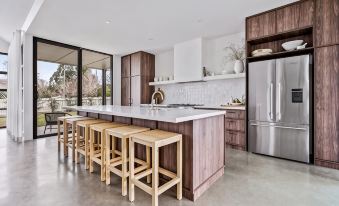A brand new, luxurious modern Cottage with fireplace, plunge pool and north facing yard. This architectural masterpiece invites relaxed living for a large group of friends, families who want to stay together but have their own space, or corporates and those seeking a retreat venue.