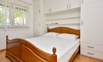 Bibinje 10 km from Zadar: Apartment house "Marko". 2 km from the centre of Bibinje, in a sunny position, 70 m from the sea, 70 m from the beach. For shared use: property 700 m2 (fenced), well-kept garden with lawn and trees, swimming pool angular heated (7 x 3 m, 24 m2, depth 150 cm, seasonal availability: 15.May. - 19.Oct.) with internal staircase. Outdoor shower, poolhouse with fridge, WC and cooking stove, terrace (32 m2), garden furniture, barbecue, children's playground (swing). In the house: internet access. Parking at the house on the premises. Shop, restaurant 650 m, café 100 m, bus stop 2.9 km, pebble beach 70 m, diving center 100 m, public bathing area 70 m. Marina 50 m, children's playground 100 m. Please note: private mooring (extra) on request. For shared use:terrace (20 m2). Possibility of renting house owner's car and trips by owner's boat (on request, extra). 3-room apartment 65 m2, on the ground floor, south facing position. Living/dining room 30 m2 with 1 double sofabed (140 cm, length 200 cm), satellite TV (flat screen), air conditioning. Exit to the terrace. 1 room with 1 french bed (160 cm, length 200 cm), shower/WC and TV (flat screen). 1 room with 2 beds (90 cm, length 200 cm), TV (flat screen). Open kitchen (oven, dishwasher, 4 ceramic glass hob hotplates, microwave, freezer, electric coffee machine). Shower/bidet/WC. Forced-air heating. No heating option. Terrace 7 m2, roofed. Terrace furniture. Partial view of the sea. Facilities: safe. Internet (WiFi, free).
