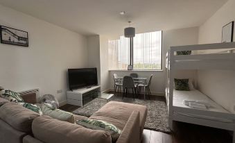 This modern apartment, centrally located on Birmingham's vibrant Broad Street, offers unbeatable value. Fully equipped with modern amenities—including free parking and WiFi—it delivers the comfort and luxury of a true home away from home. The apartment features a spacious double bedroom and a practical bunk bed in the living area, making it ideal for families or groups of friends. Whether you're visiting for business or leisure, this property combines style, convenience, and functionality for a seamless stay.