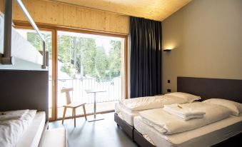Location & Outdoor Accessibility: The hotel is ideally situated for hiking, skiing, biking, and other mountain activities, with trails and ski slopes directly accessible. It offers a peaceful, scenic setting with views of forests and mountains.