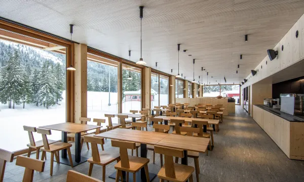 Absolutely lovely staff, and lovely minimalistic room with lots of space - with a beautiful view on the forest just outside on the mountain. The hotel had its own outside ice rink, so you can actually bring your ice skates with if you'd like. However, no gym. There are pisten directly outside the hotel, which makes it perfect for a jog or walk in the snow. Dinner was excellent. The breakfast buffet consisted of breads / pastries, birchermuesli, and fruit. On request, they had either soy or lactose free milk available, no oat. A packet of gluten-free muesli is also available on the buffet.