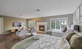 In the expansive Grand Living Room, spread out on multiple comfortable sofas and indulge in drinks and snacks from the conveniently placed wet bar. Relax by the fireplace, play games with your favorites, and enjoy views of greenery through large windows and doors to the deck. The Cozy Living Room makes the perfect place to relax with ample seating and a TV. It also hosts a workstation for those moments when you need to check in at home.