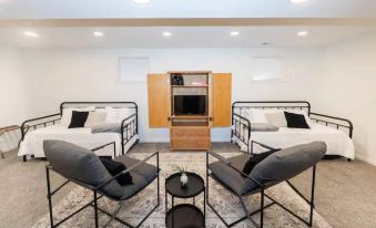 Nestled in a quiet cul-de-sac, just a 4-mile drive from IU. Sleeping- 1 king, 1 queen, 1 full, & 6 twin beds. Amenities include a W/D, free WiFi, coffee & self-check-in.