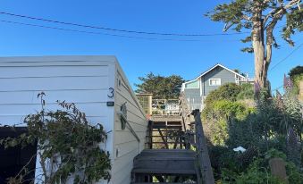 Property was clean and had beautiful views. Spatious studio with plenty of kitchen tools and a grill by the door. Several restaurants in the area with a variety of food choices. Windows looking out to the bay on two sides wo you could relax and watch. The patio for two was a nice way to relax and listen to the sea. The only downside was being right off of hwy 1, so it was sometimes difficult fighting traffic in and out of the driveway.Owners gave clear instructions for getting to the property as well as getting inside and accessing the garage. There was a folder with extra info about the area and things to do.