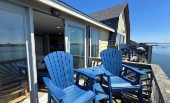 Cook side by side in your full kitchen, complete with gas stove, oven, cookware, and essentials. Dine indoors or step outside for a meal with the bay as your backdrop.