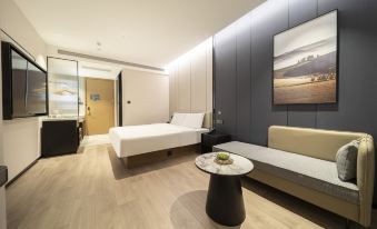衞生非常乾淨 前台服務特別好非常有耐心 床很舒服投影儀非常清晰 主要還有洗烘一體洗衣機很好洗的很乾凈 還有免費的停車場 想要的東西機器人就給你送來了特別方便 位置特別好離高鐵坐車地點很近對面就是大型商場 周圍早餐很多
