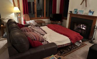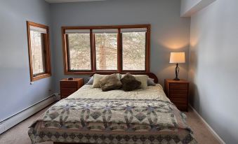 Hike right out your back door! Enjoy a beautifully furnished large open living space with cathedral ceiling and cathedral windows with sunset views. Keep warm by the fireplace (wood included) and take advantage of the fully equipped kitchen. Enjoy 2 large bedrooms, each with a full private bath. Master bedroom includes a jacuzzi tub.