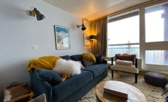 Proche des commerces et skis au pieds, très calme car au 10ème étage.