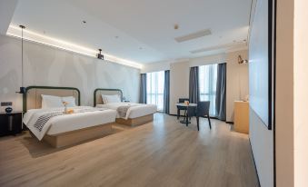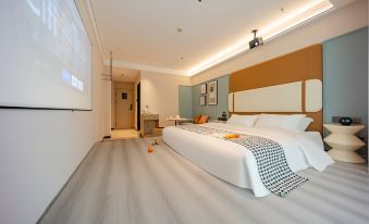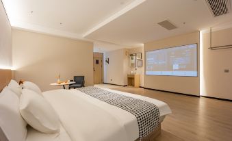 The hotel is located on the ninth floor of the Jinry Hyatt shopping mall on Guangming Road. The Jinry Htay building is a large and bustling business district in the city centre. The hotel is close to linqiao Plaza, R7-Mart Supermarket, Hengdian Cinema, KFC, McDonald's, Haidilao Hot Pot, Memorial Day Department store, ICBC Head office, Auchan KTv and other entertainment plaza it is close to weiwu plaza, Cao' s park and other leisure plaza. It is about five minutes from the railway station and municipal government. The hotel is located in a commercially mature neighbourhood with very convenient living facilities. The hotel has a selection of comfortable rooms, each equipped with 24-hour hot water, independent WIFl, central air conditioning, HD projection, all-room intelligent equipment, and 24-hour housekeeping service to give you a pleasant stay.
