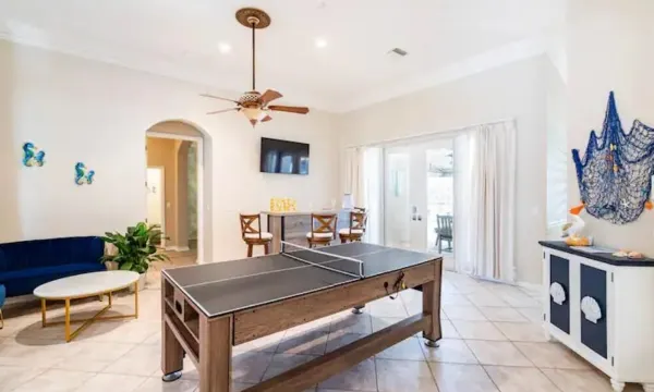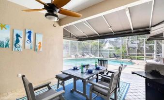 This is your Family Fun-tastic Vacation Home close to Anna Maria Island, with something to do and enjoy for everyone! Bring the whole family to this great place with lots of room for entertainment! Whether you are ready to explore the considerable backyard, hang out in the lanai beside the pool and outdoor dining area, relax watching one of the many tv's throughout the home, or just chill out after a "hard" day at the beach, this home will surely meet your needs for a wonderful stay and R+R!About pets:No pets allowed.About checkOut:Check out before 11:00 AM.About children:Children allowed: ages 0-17.About customRules:"Quiet Time" to be observed after 10pm.About checkIn:Check in after 3:00 PM.About smoking:Smoking is not permitted.About minBookingAge:Minimum age to rent: 25.About events:No events allowed.