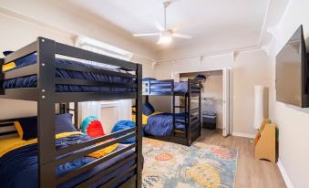 5 bedrooms: 2 bunk beds 2 queen beds and 2 king beds