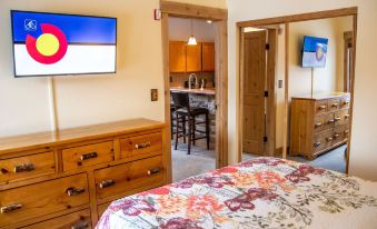 This bright & beautifully-renovated first floor, corner-unit condo in Antlers Lodge offers high-end finishes, an abundance of natural light, and a cozy cabin feel with easy walking access to the lifts and heart of Breckenridge.