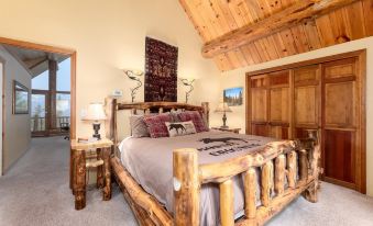 The bedrooms are furnished with authentic, hand peeled, custom built Aspen log furniture that adds to the character of this lovely log home. The living room features a cathedral ceiling with fan and elk horn chandelier, a natural stone fireplace back drop, a wood burning stove, and huge windows perfect for gazing out at the ski area and mountain views. Well equipped kitchen with everything you would need to comfortably prepare meals for large groups and holiday feasts. Our home is perfect for the family who wants plenty of space to spread out and enjoy themselves or the vacation that is designed to spend time with friends or extended family. Whether you are visiting Breckenridge for the snow filled winters months to ski, snowmobile, snow shoe or ice fish, or the incredible summer months ideal for hiking, biking, 4 wheeling and fishing, or the more quiet fall months with their cooler temperatures, colorful foliage, and spawning trout, come and enjoy our home all year long and renew your body, mind and spirit with the special times each season brings.