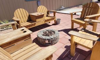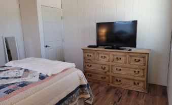 The apartment is rustically furnished with brand new custom ordered furnishings, including queen-size beds/mattresses. Also, found in the apartment is a TV in each bedroom and living room, on-site Fiber Optic 5G WIFI, outside lounging furniture on a viewing deck as well as on the ground floor patio. A full-size stove/oven, refrigerator, counter-top ice maker, microwave, filtered drinking water, coffee pot, dishes, pots & pans, linens, towels, washer & dryer (bring your own laundry soap) and an outdoor gas grill are all provided. Tabletop heater and a fire pit are also available to ensure the enjoyment of the outdoors, even on cooler evenings. The apartment comes equipped with a sophisticated mini-split heating and air conditioning system as well as a back-up generator for any unexpected power outage.