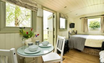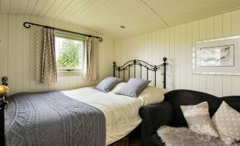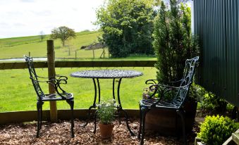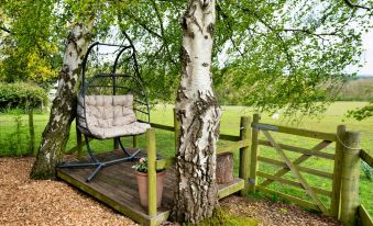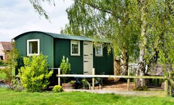 Nordley: Timber house. Private: garden. Garden furniture. "Hay and Hedgerow Glamping", 2-room chalet 10 m2. Object suitable for 2 adults. Living room with TV. 1 room with 1 double bed. Kitchen (oven, kettle, microwave). Shower/WC. Terrace. Facilities: Internet (WiFi, free). Parking (1 car). Please note: non-smokers only.