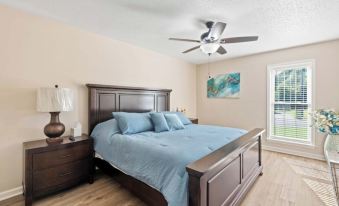 This space contains (4) spacious bedrooms. (3) rooms contain a king-size bed & (1) bedroom containing a queen-size bed. This cozy home also offers strong wifi connection, an electric fireplace located within the living room which is accompanied by (2) plush recliners, a 32” flat screen tv, & a few fun surprises so during your stay you can either choose to have an intimate movie night or family game night. The kitchen contains a Genoa Green marble dining room table with cabinets to complement this unique aesthetic with hints of gold detail along with porcelain tile for the flooring. Located next to the kitchen is our utility room which has a washer & dryer that our guest are more than welcome to use during their stay. Lastly, this home contains (2) fully modernized bathrooms which have been remodeled to be handicap accessible.About pets:No pets allowed.About children:Children allowed: ages 0-17.About customRules:Keep thermostat on AUTO instead of fan. If the thermostat is tampered with the air will not circulate through the home properly..Do not go inside of the filing cabinet located within the utility room..About smoking:Smoking allowed: in designated areas.About events:No events allowed.