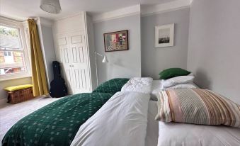 3 bedrooms: 2 single beds 1 queen bed and 1 king bed