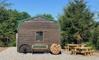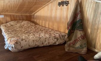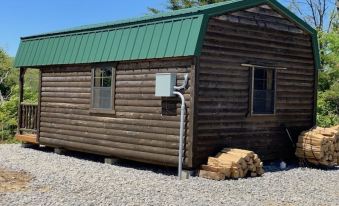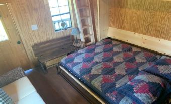 Two room cabin with two small lofts- one open area and one bathroom with shower.