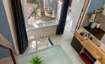 Nestled in a peaceful and private setting, this light-filled, artistically renovated loft unit offers a perfect retreat for up to four guests. With a fully equipped kitchen, fridge, climate control, and a cozy TV nook featuring Netflix, you’ll feel right at home. The en-suite bathroom adds to your comfort and convenience.