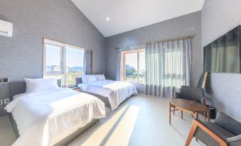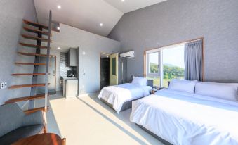 길 건너 바닷가가 가깝습니다. 객실은 쾌적합니다. 조금 건조한 면이 있지만 크게 지장이 있지는 않습니다. 아침에 갓 구운 빵과 텀블러에 담긴 커피와 함께 간단한 조식을 준비해 주시는데 맛납니다.