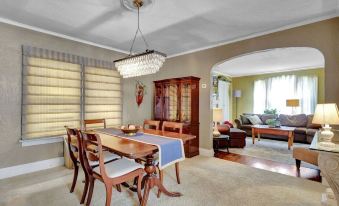 Just around the corner from Delaware Park, this beautiful apartment is located in a peaceful safe neighborhood while also just 1 minute from the shops and restaurants of Hertel Ave and 3 minutes from those of Elmwood Ave. It's also less than 10 minutes from the medical campus/Allentown and ~20 minutes from Niagara Falls Park. This 5 bed, 2 bath extremely spacious unit fits groups of up to 9 and also includes a large living room and dining room, as well as a finished basement with kids' playroom.