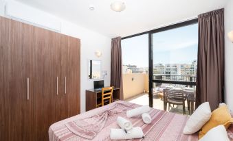 Brand new modern-finished one bedroom penthouse located just 100 metres off the St Pauls Bay promenade. It has a large outside sunny terrace of 13 sqm with partial panoramic sea views, BBQ and outside furniture (sunbeds, chairs, and table). This penthouse apartment is fully air-conditioned.