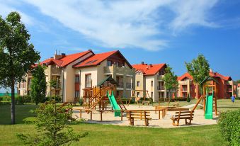 Bükfürdő: Modern, beautiful apartment block, built in 2005. In a quiet, sunny position, on the golf course. For shared use: park 100 ha (fenced), swimming pool heated (seasonal availability: 01.Jan.-31.Dec., extra) with internal staircase. Outdoor shower, tennis (extra), children's playground. In the house: internet access, WiFi, central heating system, air conditioning, washing machine. Shop 400 m, restaurant, café, outdoor swimming pool, indoor swimming pool 100 m, thermal baths 500 m. Golf course (18 hole), tennis, children's playground 100 m. The swimmingpools and the thermal bath can only be accessed with entry cards, tickets can be bought locally. "Hole in One", 3-room apartment 55 m2 on 2nd floor. Beautiful and modern furnishings: living/dining room with TV. Exit to the terrace. 1 room with 1 french bed (200 cm, length 200 cm). 1 room with 2 beds. Exit to the terrace. Open kitchen (4 hot plates, dishwasher, X ceramic glass hob hotplates, microwave). Bathroom, sep. WC. Balcony 16 m2. Terrace furniture. Facilities: iron, hair dryer. Reserved parking space n 497 at the house. Please note: non-smokers only. 1 pet/ dog allowed.