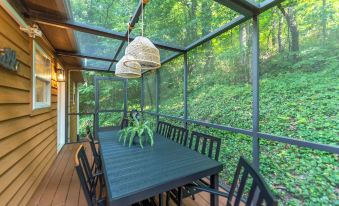 Relax in nature's beauty where modern farmhouse meets rustic chic! A memorable Asheville experience achieving the balance of seclusion but close to downtown, Biltmore, restaurants, breweries and more!! Relax with a local sour beer or glass of wine on the front or back porch looking out to our tree lined forested property and listen to the calming waterfall.