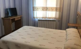 Un hostal sencillo pero con todas las comodidades básicas. No tiene aire acondicionado (en julio no fue necesario, ya que todos los días estuvimos fuera). Al lado están bares, restaurantes, un supermercado, la iglesia y el parque. Hay donde aparcar. Un lugar bastante ruidoso, sobre todo con ventanas abiertas. Sin ascensor.