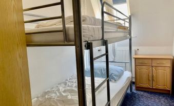 2 bedrooms: 1 bunk bed and 2 queen beds