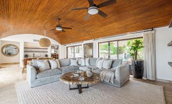 Amenities such as a Sonos sound system with speakers inside and out of the house, Satellite TV, and daily maid service ensures a wonderful experience.