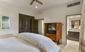 Buena Vida at Hacienda is a lovely four-bedroom 3 1/2 bath oceanfront residence located in the Hacienda Beach Club, which offers world-class amenities on the most coveted stretch of beach in Cabo San Lucas, Medano Beach. A family-friendly, private residence resort, this Hacienda condo offers beautifully appointed indoor and outdoor spaces, a spacious wraparound covered terrace with outdoor dining table, and spectacular views of Land's End and Cabo San Lucas Bay. This premier location on Medano Beach is a short walk to Puerto Paraiso Mall, Cabo’s world-class marina, downtown, and all of Cabo’s nightlife. The resort amenities include a fabulous beach club, seaside lounge, gourmet dining, full-service spa, fitness area, and concierge services. We also have 4 pickleball paddles and a travel mahjong set.Enjoy the luxury, comfort, and convenience of Hacienda.