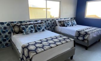 3 bedrooms: 1 queen bed 1 king bed and 2 double beds