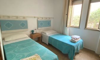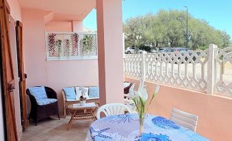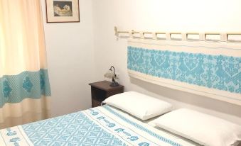 At Cala Gonone holiday home with sea view. The flat is very nice, comfortable and furnished in such a way that you can spend your holiday pleasantly and peacefully. The kitchen is very spacious and equipped with dishes, with a table for five; in the living room there is a television and a relaxation corner. The municipality is Dorgali. The house includes other lodgings inhabited by relatives. Our guests' cars find parking in front of the house in a very quiet street with a green area in front, so it has no houses that limit the view. It is on the ground floor and is accessed independently from the terrace. Around it there are flower beds. The flat includes a semi-covered veranda furnished with a sitting area and a table and chairs for eating outdoors, a spacious kitchen furnished with modular furniture and equipped with everything you need (microwave, refrigerator, gas cooker, crockery and dishwasher); a living room with relaxing armchairs, table and chairs, a cupboard containing plates, glasses, pots, toast machine and whatever else you need; there are three bedrooms (two large and one small), but all with two beds. The rooms have large, bright windows with mosquito nets.