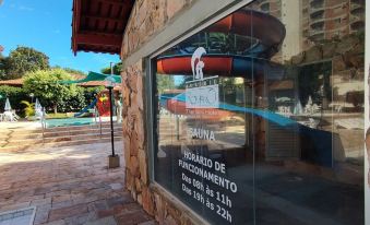 Hotel muito confortável, quarto com tamanho bom,tv com varios canais, bem ventilado, inclusive o banheiro tem duas janelas. Equipe da recepção atenciosa, estacionamento amplo e com várias vagas. Piscinas boas,não ficam superlotadas, sauna boa tambem. No final da tarde há apresentação de musica ao vivo,gostei das duplas .No geral gostei muito deste hotel. Pontos fracos: Senti falta de jantar. O Hotel não é proximo do comercio, é isolado e nos obriga a sair à noite para procurar lugar para jantar. Tentei sair a pé para o restaurante mais proximo, porém ha partes do caminho que não tem calçada e vc é obrigado a andar na avenida, o que é inseguro. Música de mau gosto na piscina, um sertanojo pornô, horrivel e constrangedor pois tem crianças no local.