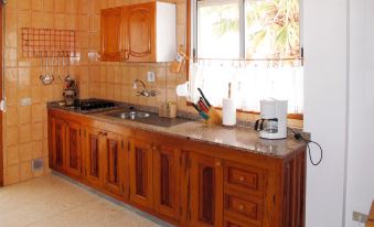 Apartment house "El Jardín en Cuevecitas", 500 m a.s.l.. 5 apartments in the property. In the district of Cuevecitas 6 km from the centre of Candelaria, 30 km from the centre of Santa Cruz, 51 km from the centre of Puerto de la Cruz, on a slope, 6 km from the sea. For shared use: natural state property 5'000 m2 with lawn and trees, swimming pool (above ground) round (4.50 m diameter, depth 140 - 140 cm, seasonal availability: 01.Jan. - 31.Dec.). Outdoor shower, barbecue. In the house: washing machine (for shared use). Parking on the premises. Shop 6 km, restaurant 1 km, bus stop "Luis Otazo Marrero" 2.6 km, sandy beach 6 km. Please note: car recommended. The owner lives in the same residence. "Cuevecitas", 3-room apartment 70 m2 on 1st floor. Practical and tasteful furnishings: living/dining room with dining table, satellite TV, radio, CD-player, DVD and gas heater. Exit to the terrace. 1 room with 2 beds (length 200 cm), shower/WC. 1 room with 2 beds (length 200 cm). Open kitchen (2 hot plates, 2 gas rings, toaster, kettle, freezer, electric coffee machine). Shower/WC. No heating option. Terrace 80 m2. Terrace furniture. View of the sea. Facilities: baby cot. Internet (WiFi, free). Please note: non-smokers only. A-38/4.47900