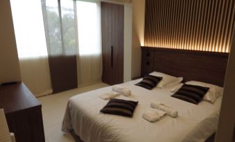 Very modern luxury apartment. High-end equipment. Sea view Large living room with sofa bed (real mattresses very comfortable for 2 persons), fully equipped kitchen, 2 bedrooms (in each 2 single beds 90 can be converted into 1 double bed 180)., 1 bathroom bathtub- shower + 1 bathroom with shower, 2 WC 1 séparé.Toutes rooms are air conditioned. WIFI -TV many systems-