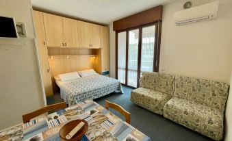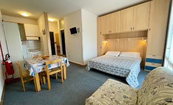 The property can accommodate up to four guests, located on the 3rd floor of a building with a lift and a shared outdoor pool, only 190mt from the beach. It comes with a double bed and two single sofa beds, a well equipped kitchenette, a nice balcony, and a full bathroom with a shower box. The studio is equipped with a washing machine, and one uncovered parking spot. A/C is available at an additional cost (check below).°Swimming pools are open seasonally (mid June/early September): exact dates may vary due to weather or maintenance.