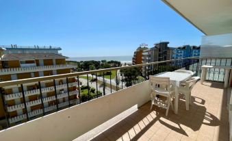 One-bedroom apartment located on the 5th floor with an elevator, only 180mt from the beach, it can host up to five guests. It is composed of a bedroom with a double bed plus a single sofa bed, a fully equipped kitchen, a living room with a double sofa bed, a balcony with sea view, and a full bathroom with a shower. The building offers a shared swimming pool, and one uncovered parking space is included. A/C is available at an additional cost (check below).°Swimming pools are open seasonally (mid June/early September): exact dates may vary due to weather or maintenance.