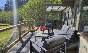 Welcome to your private West Coast lodge. This home is a tranquil escape, surrounded by lush forests and offering breathtaking views of the Pacific ocean. Whether you're watching eagles soar, orcas swimming, or seals and otters playing in the waters, you will be completely immersed in the beauty of nature.