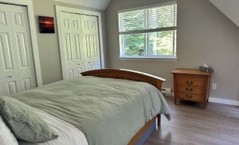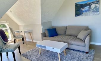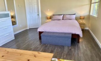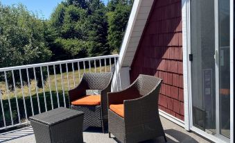 Cute little place with nice view from the balcony. Large room on the ground floor for the kids and beautiful property. Our family of four stayed there for a few nights in the fall and enjoyed our stay, although the place could use a table and chairs to have a sit down meal on the cozy upper floor. There is a table and chairs outside that would be great in the summer, but a little too chilly in the fall. Hosts were extremely responsive when we asked for extra stools for the breakfast bar. Pet friendly, and the hosts provided treats and a binder with local beach information for exploring. We really enjoyed our stay!