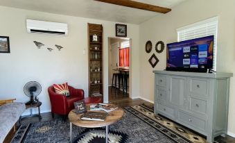 Welcome to "West of the Pecos"! This Southwestern style tiny home is the perfect place to relax! Centrally located in Carlsbad, NM, only 45 minutes away from the famous Carlsbad Caverns! 5 Minutes from downtown restaurants and an amazing local brewery. 1 bedroom, 1 bath, with an additional queen size futon in the living room if needed. Check in easy with custom smart lock code. WiFi, SmartTV, and free parking provided out-front of the unit. About pets:No pets allowed.About checkOut:Check out before 10:00 AM.About children:Children allowed: ages 0-17.About checkIn:Check in after 4:00 PM.About smoking:Smoking is not permitted.About minBookingAge:Minimum age to rent: 21.About events:No events allowed.