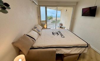 The nearest airport is Mediterranee Airport, located about about 14 mins from hotel by car (9.7 km) away.How do I get to Large studio with sea view. from the nearest airport?