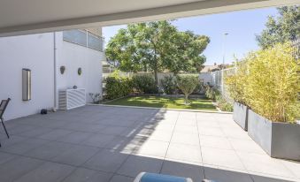 Rated 3 stars by Provence Tourisme, this apartment, which is strictly NO SMOKING, is less than 5 minutes' walk from the port of Carry le Rouet and the sea, and many small beaches within 2 km of the apartment. This is a very modern 2 bedroom apartment with a fully equipped kitchen and air conditioning in the living room and bedrooms. It is located on the ground floor of a high-end building with its own garage for the use of visitors. In the living room, which opens onto the terrace and the garden, there is a 2-seater leather reclining sofa and a swivel armchair as well as a red leather rocking chair. On the terrace there are 2 "sun loungers" and 2 "relax" chairs as well as a metal table with 4 dining chairs for use on the terrace or on the lawn. The 47 m2 terrace faces the 50 m2 enclosed garden. The master bedroom has a king size bed and a TV, and the second bedroom has a desk and 2 adulte size single beds. The bathroom has a shower and sink. The toilet and bathroom are combined. Towels, shampoo, toilet paper, etc. are provided. Free Wi-Fi is provided and NETFLIX and PRIME TV are available on the 81cm TV in the living room. A Franprix supermarket, open 7 days a week, is only 100 m away, and there are shops, banks, medical services etc. close to the apartment. The parking is in a private garage in the underground car park which is accessed from the Draio de la Mer side of the complex. An elevator is available between the garage and the ground floor with the elevator exit/entrance very close to the front door of the apartment.About pets:No pets allowed.About checkOut:Check out before 11:00 AM.About children:Children allowed: ages 0-17.About checkIn:Check in after 4:00 PM.About smoking:Smoking is not permitted.About minBookingAge:Minimum age to rent: 18.About events:No events allowed.